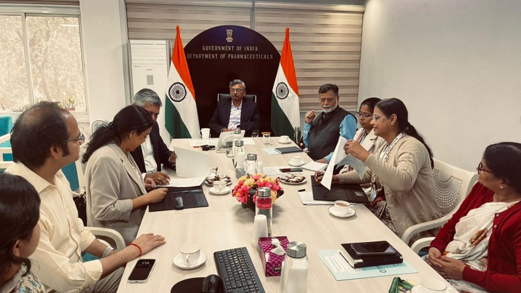 दिल्ली में आयोजित बैठक में उपस्थित औषधि विभाग के सचिव मनोज जोशी व अन्य प्रतिभागी