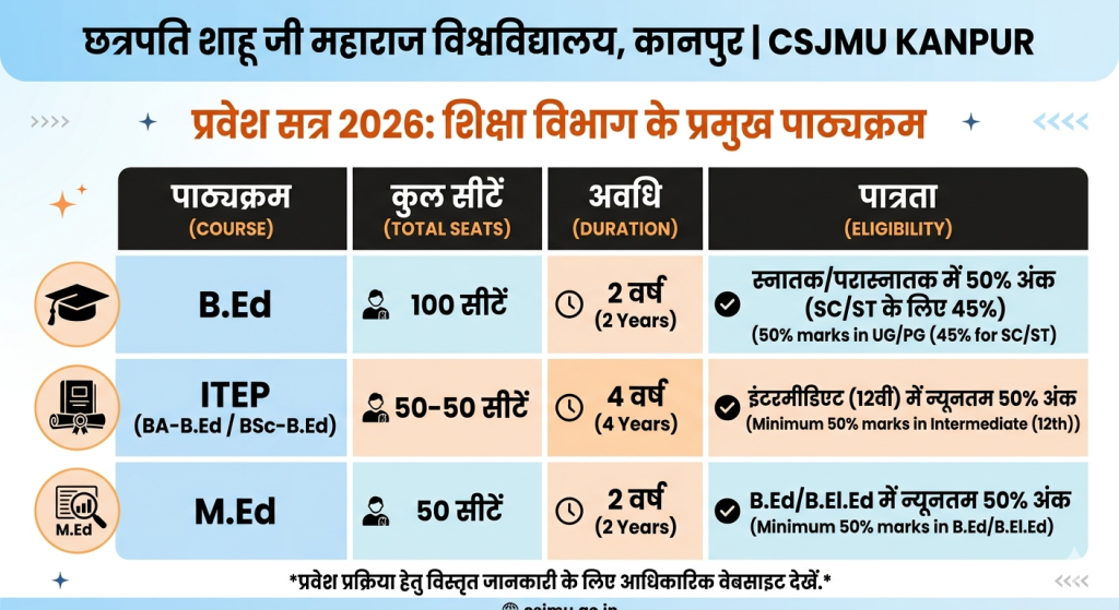 CSJMU Kanpur Admission, B.Ed Admission 2026, ITEP Course Kanpur University, M.Ed Entrance Exam, CSJMU Education Department, Teacher Training Course Kanpur, NEP 2020 Courses.